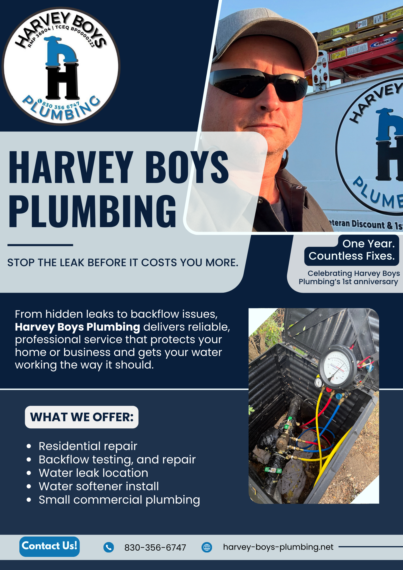 Harvey Boys Plumbing is your go-to plumbing service provider in Marion, Texas. We are your master plumbing, med-gas and backflow testing company, we offer Reliable Affordable Master Services for all your plumbing needs. Dedicated to bringing high quality plumbing craftsmanship at Affordable pricing...